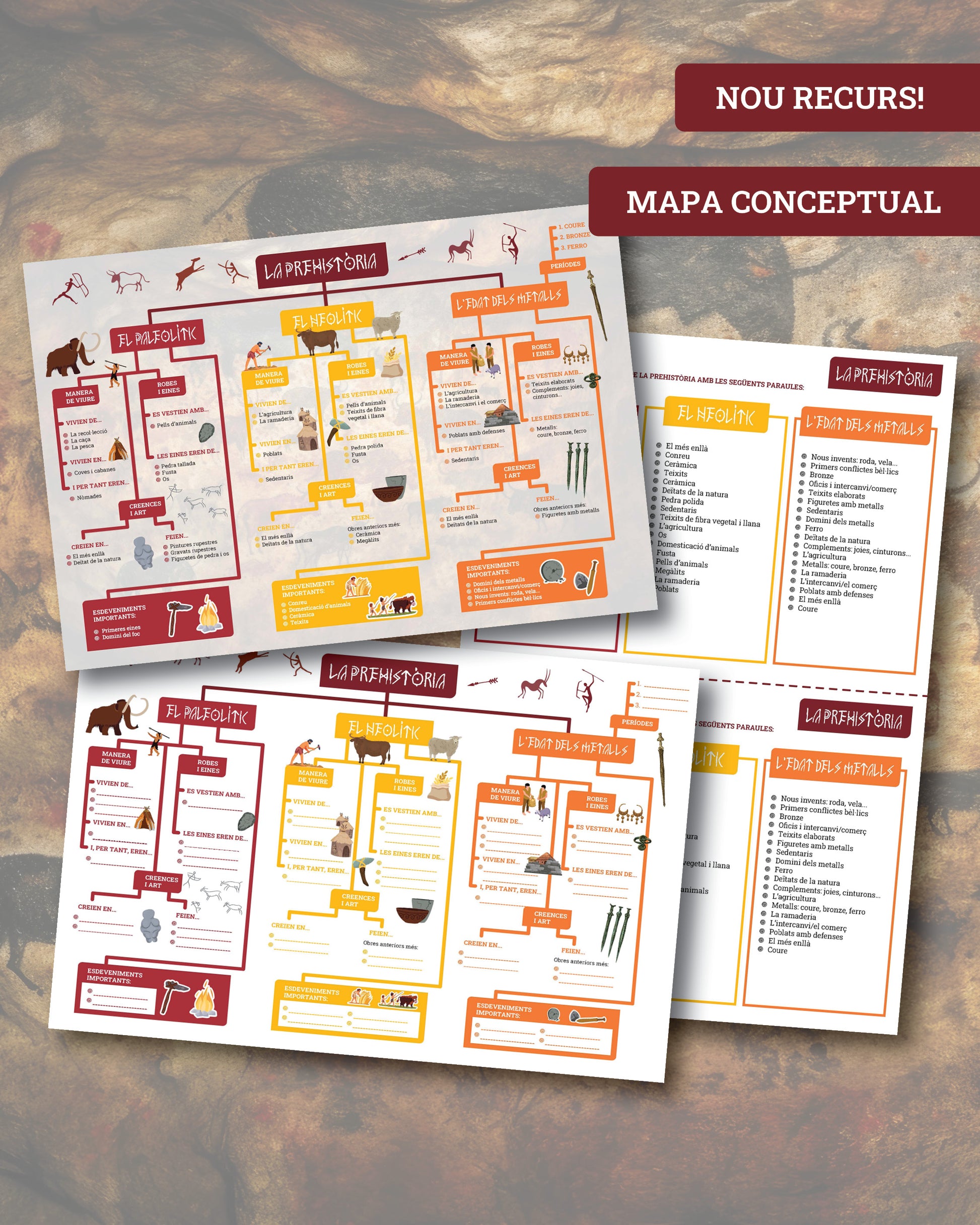 - Mapa conceptual de la Prehistòria (complet i amb buits).
